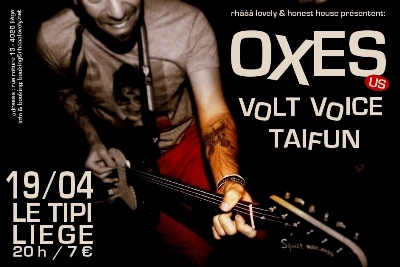 C’est avec un nouvel EP qui sort sur Africantape sous le bras qu’Oxes viendra au Tipi le mardi 19 avril. Après une longue attente puisqu’ils n’avaient rien enregistré depuis l’excellent EP OXES en 2005 qui s’était lui-même fait attendre en succédant à leur 2e et dernier album en date OXXXES sorti 3 ans plus tôt. Et oui, la qualité se fait souvent attendre. Naviguant quelque part entre Shellac et Don Caballero, Oxes c’est avant tout du math rock bien ficelé et réfléchi. Mais pas seulement. L’âme du trio se révèle sur scène (parfois aussi dans le public, debout sur le bar, dans les toilettes, sur le trottoir, …). Fort, déjanté, fou, ou même burlesque sont des qualificatifs souvent associés à leurs prestations. Il faut dire que leur participation au Baltimore Rowdy Collective, une bande de joyeux lurons qui passent leur temps libre à faire des blagues dans les lieux publics, leur a donné goût, de happening en happening, à tenir le public en haleine. Un concert d’Oxes semble toujours trop court. D’autant plus que leur musique est à la hauteur des attentes du public le plus exigeant. Ce n’est peut-être pas seulement un hasard si les dates de naissance des guitaristes Marc Miller et Natalio Fowler correspondent respectivement aux dates de naissance et de mort de Jimi Hendrix ; ils sont nés pour s’associer au batteur Christopher Freeland et répandre la bonne nouvelle d’Oxes ! Un concert à ne surtout pas rater sous peine de s’entendre dire quelques décennies durant « tu as manqué un concert énooooorme ! ». Vous voilà prévenus.